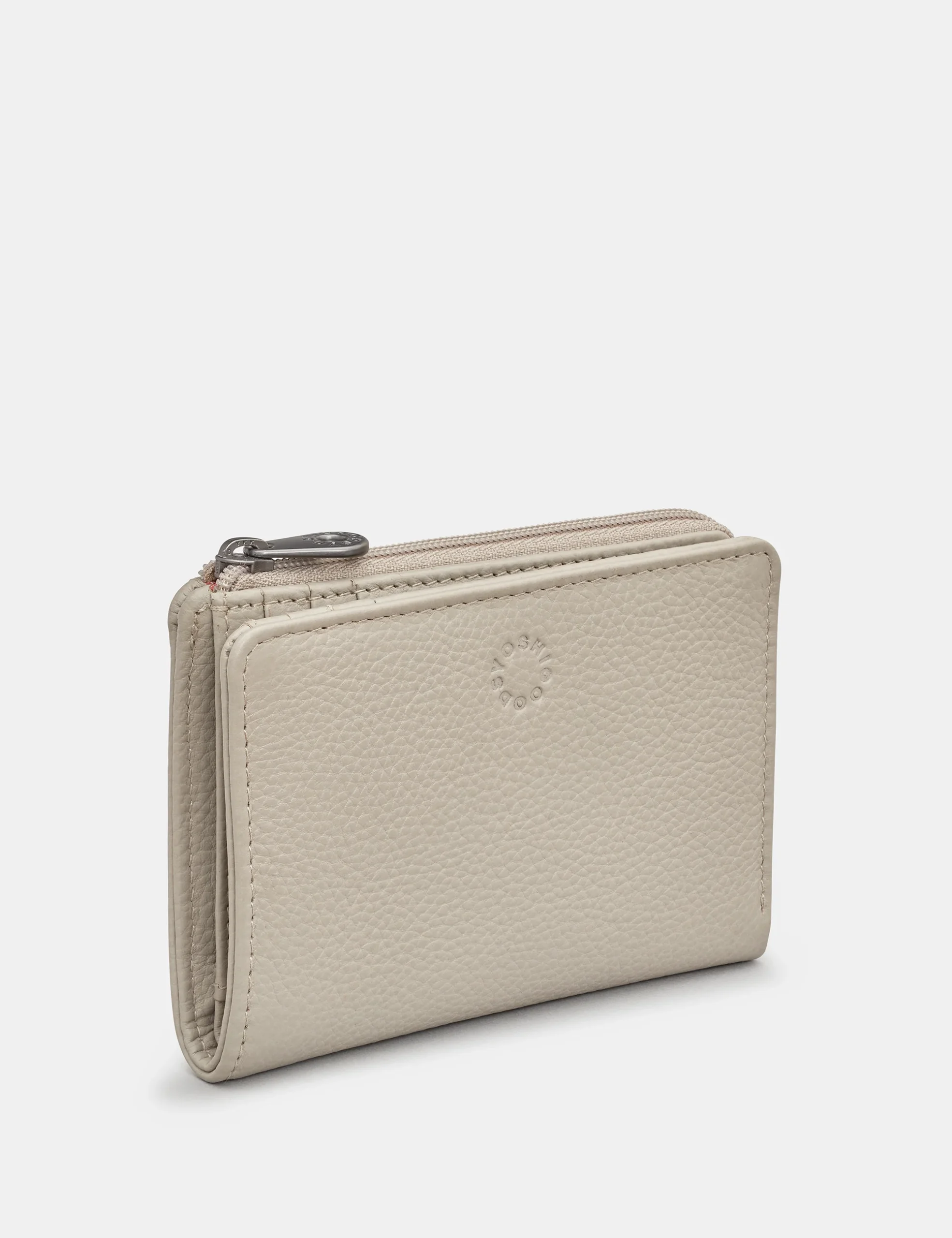 • Warm Grey Leather Zip Round Purse