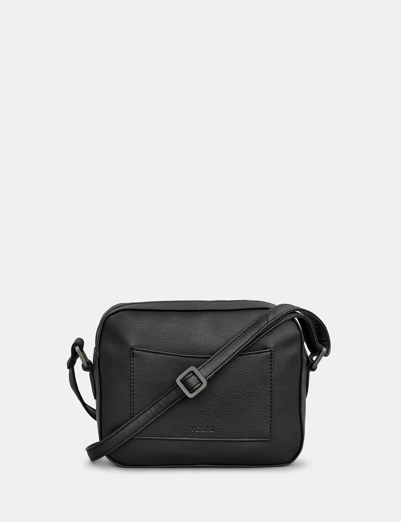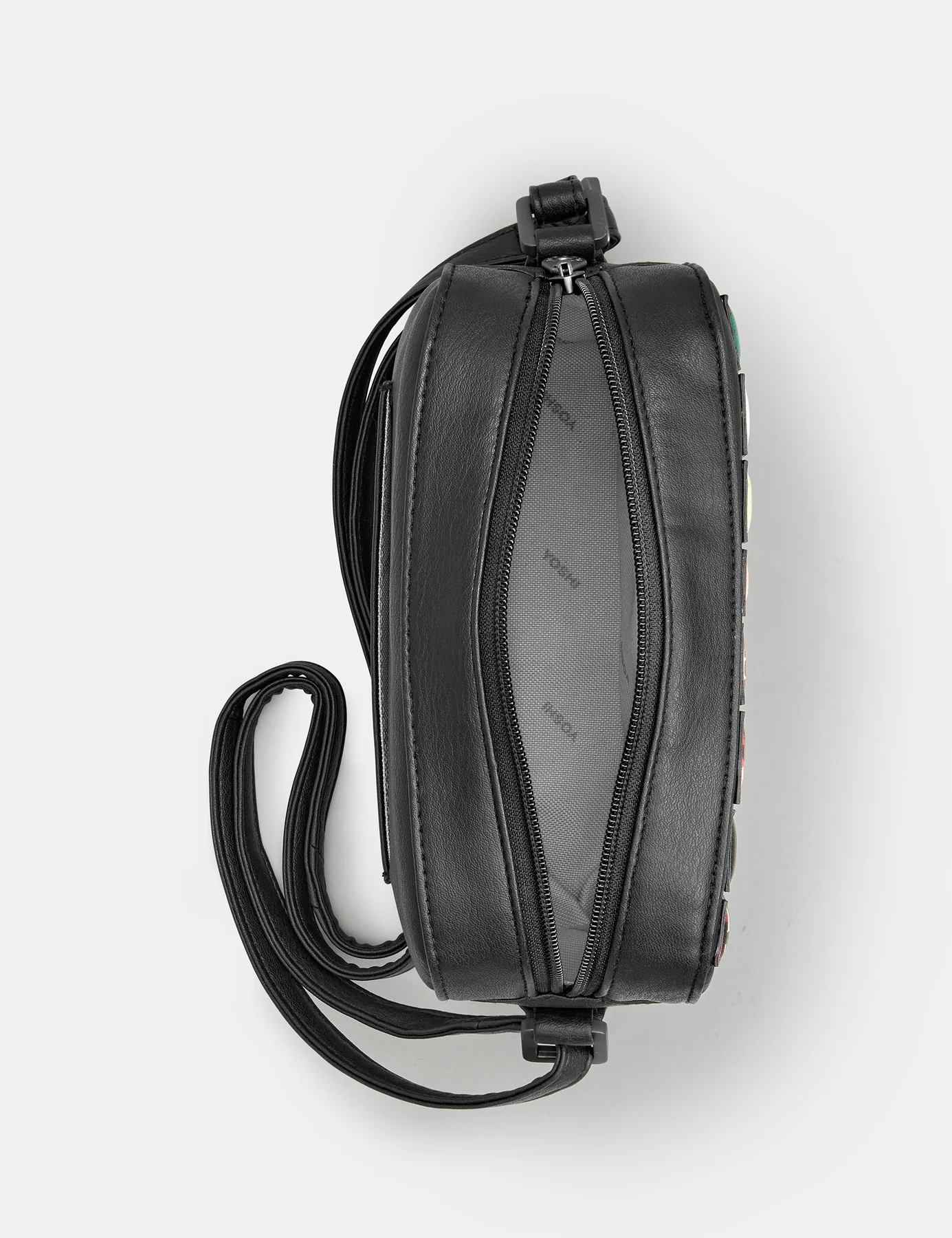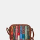Yoshi’s trademark book appliques are now available on vegan leather with this cross body camera bag. Books, new and old are carefully appliqued onto the front of this faux leather camera bag. There is a zip top fastening and a useful slip pocket on the back.