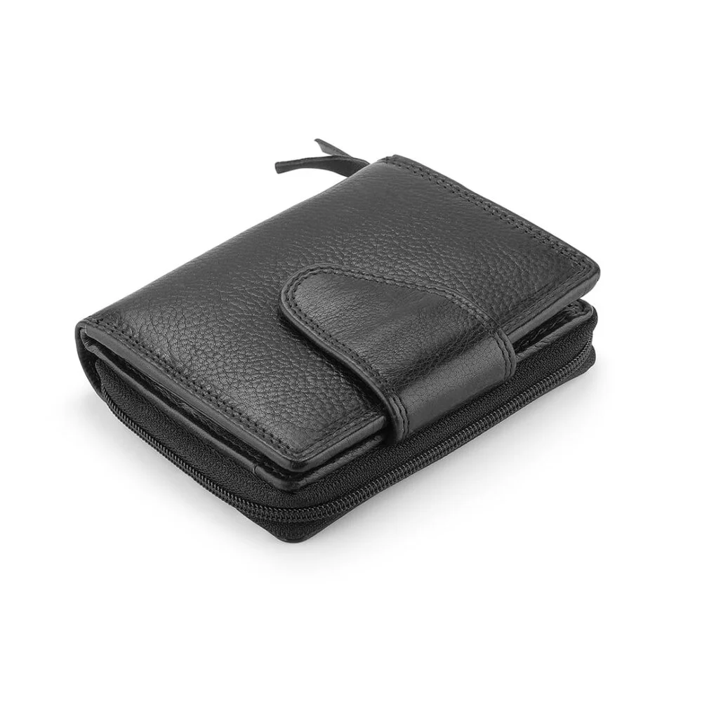 Primehide RFID “Selena” Washed Cancun Small Trifold Leather Purse – Black